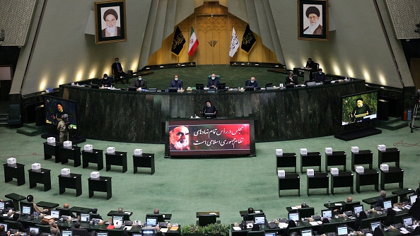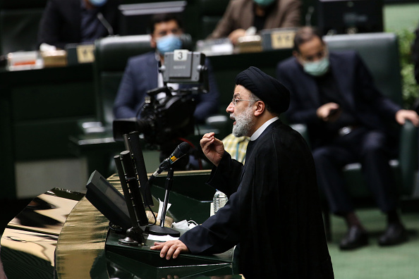 Iranian President Ebrahim Raisi speaks in defense of his cabinet nominees during a session of parliament, Tehran, Iran, August 25, 2021. /Getty