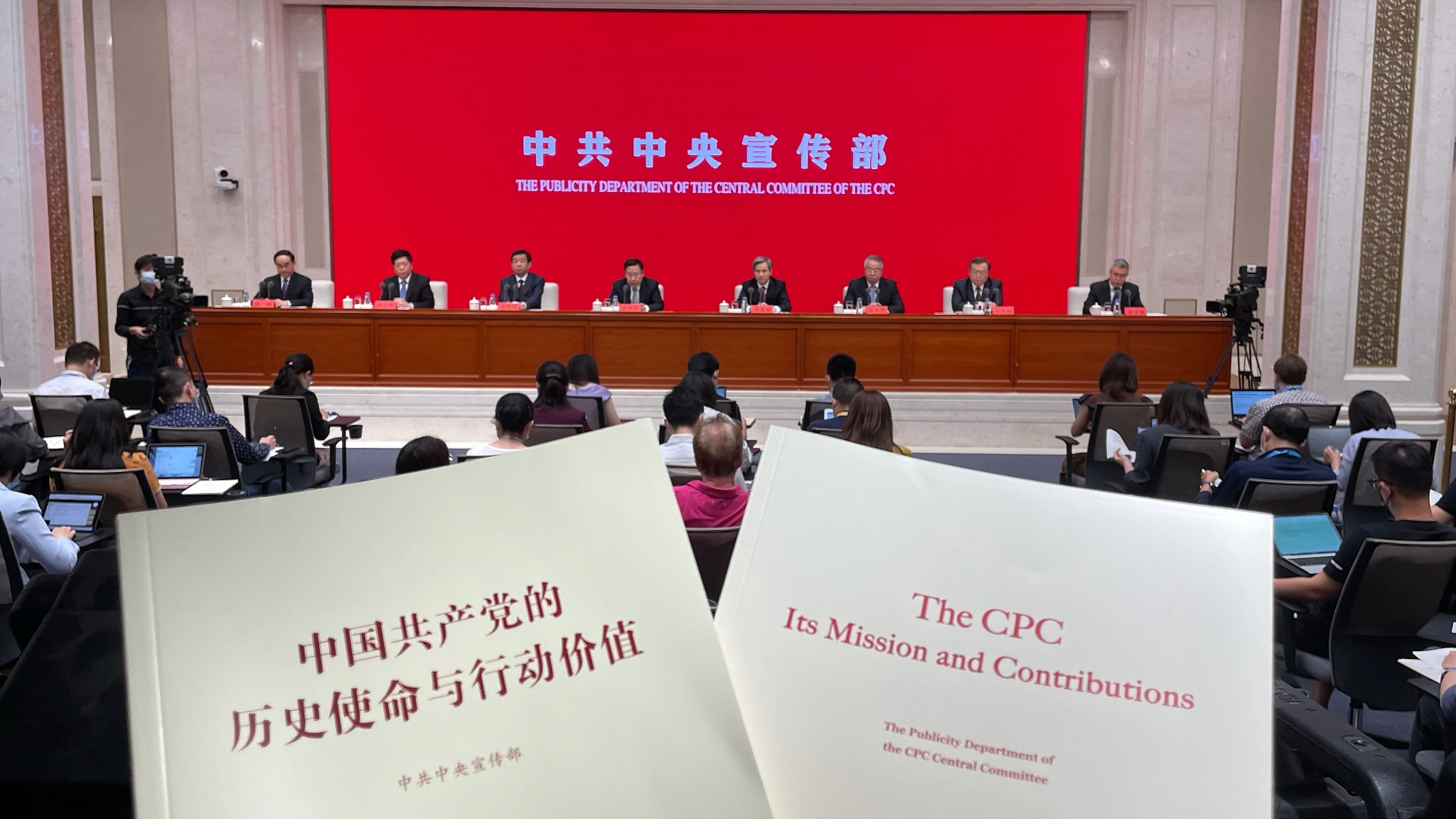 The Publicity Department of the Communist Party of China (CPC) Central Committee releases a document titled "The CPC: Its Mission and Contributions" at a press conference in Beijing, China, Aug 26, 2021. /CFP