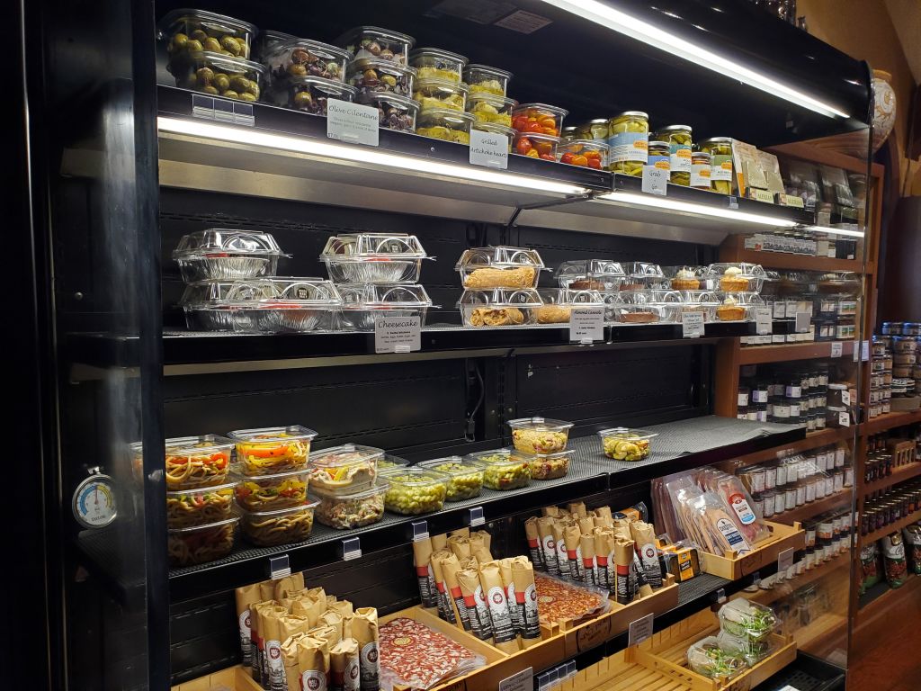 Side view of the refrigerated display case with a selection of olives, cheese and cakes at V. Sattui Winery in St Helena, California, U.S., February 6, 2021. /Getty