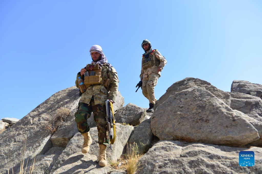 Afghan anti-Taliban fighters patrol in Anaba District, Panjshir province, northeast Afghanistan, September 1, 2021. /Xinhua