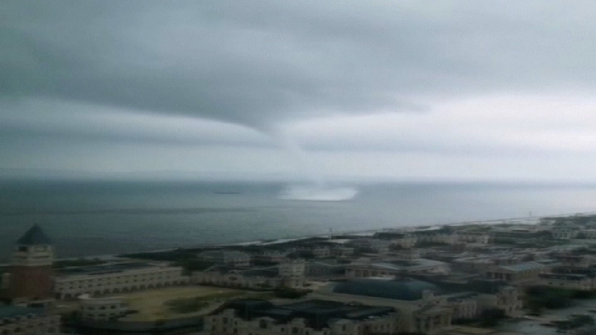 Three massive waterspouts were spotted on Saturday off the coast of Dalian City, northeast China's Liaoning Province, drawing attention from local residents. The first waterspout was spotted at around 7:45 a.m., with two more appearing in the afternoon.