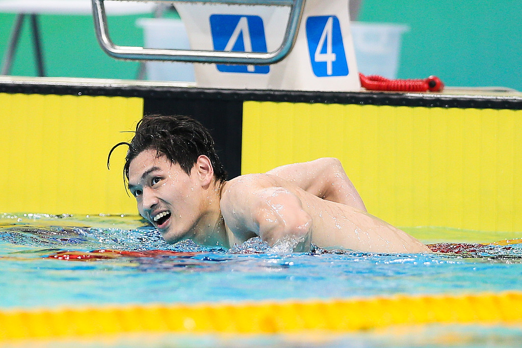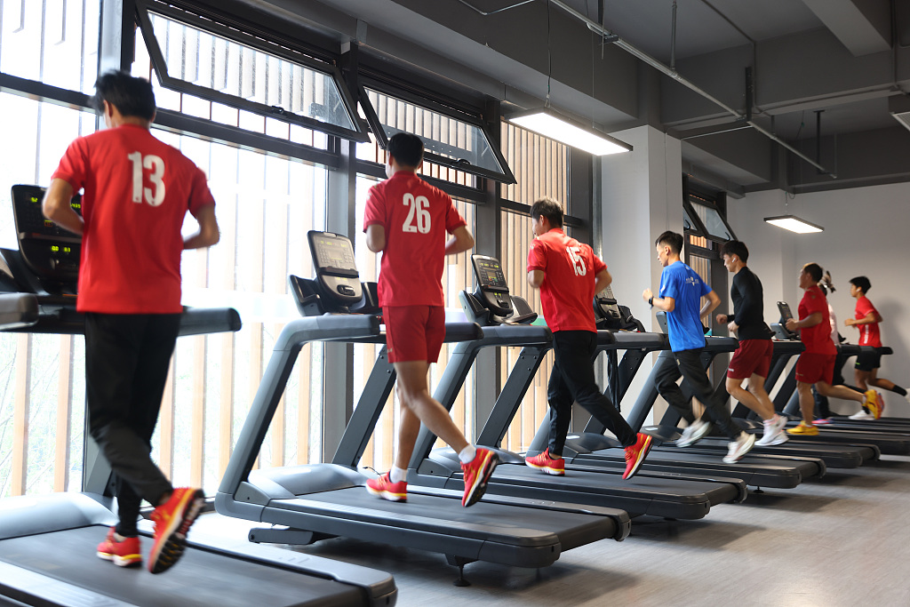 Xu Xin (L) celebrates with Liu Shiwen during the table tennis mixed doubles final. The duo, who lost the inaugural event at the Tokyo Olympics to Japanese counterparts Jun Mizutani and Mima Ito in the final and took the silver, triumph at the National Games in Xi'an, Shaanxi Province, September 24, 2021. /CMG