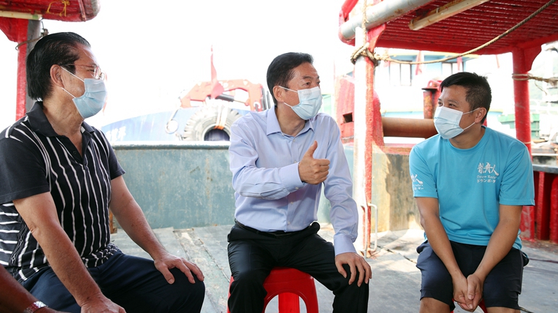 Luo's first stop was the Aberdeen Typhoon Shelter, where he boarded a fishing boat and was warmly welcomed by the fishermen, who said the fishery sector and fishermen in the HKSAR have seen tangible benefits thanks to a series of central government policies over the years.