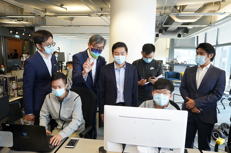 Luo (C) visits young entrepreneurs in Cyberport in the HKSAR, China, September 30, 2021.