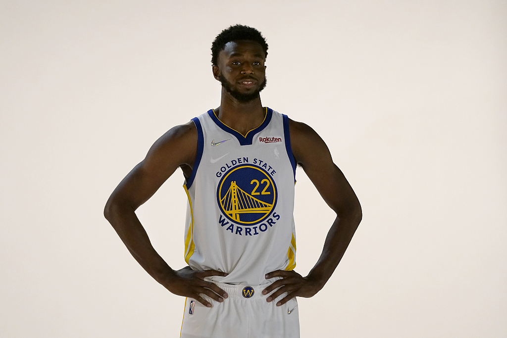 Andrew Wiggins of the Golden State Warriors poses for a portrait during the team's media day event, September 27, 2021. /CFP
