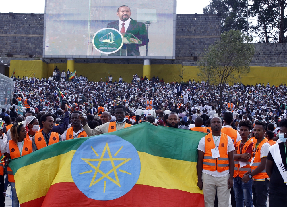 Ethiopians attend a ceremony at Meskel Square held for Ethiopian Prime Minister Abiy Ahmed Ali after he was sworn in for a new five-year term in Addis Ababa, Ethiopia, October 04, 2021. /CFP
