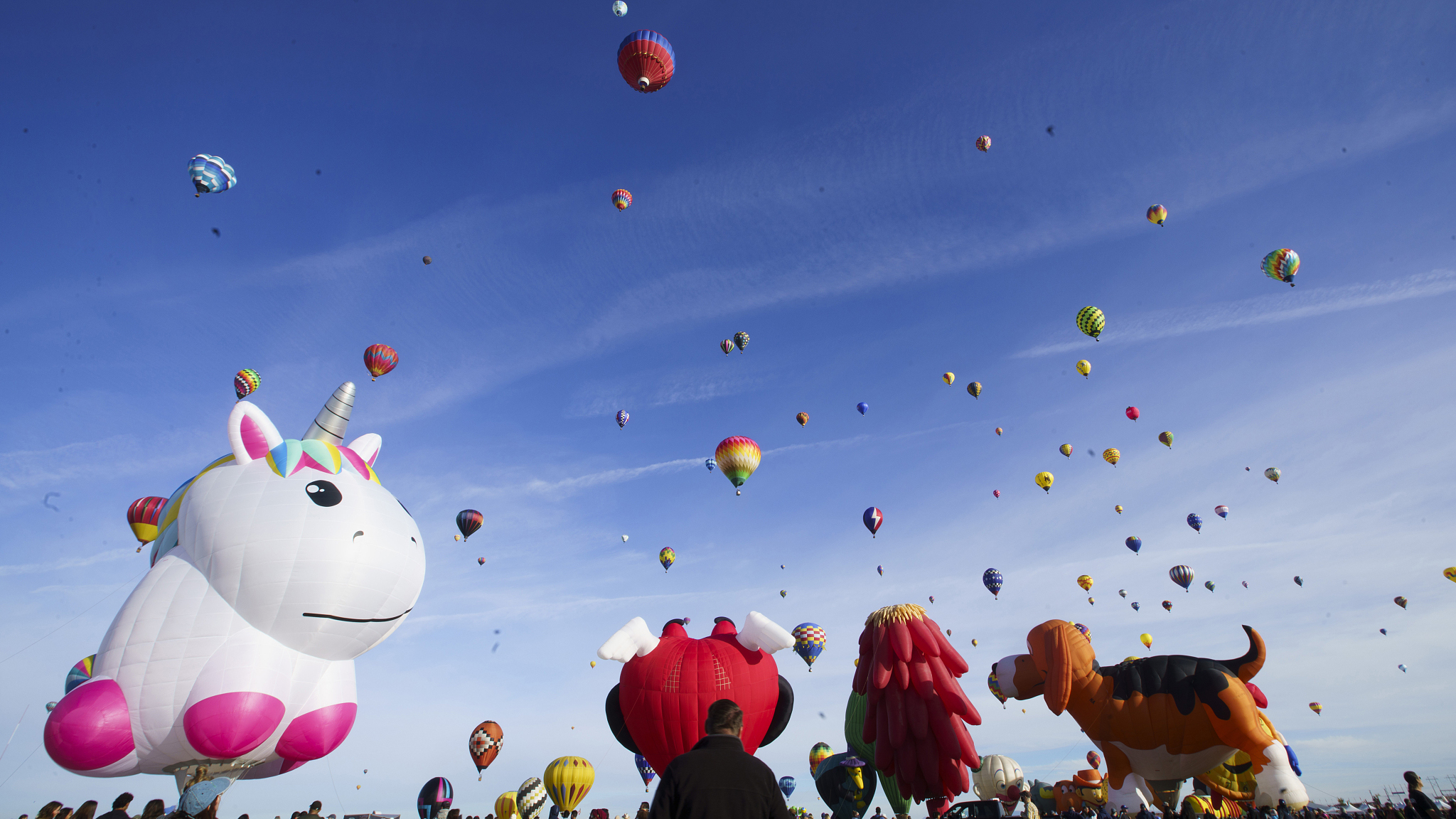 Hot-air balloons have taken to the sky over the southwestern U.S. state of New Mexico at the Albuquerque International Balloon Fiesta.
