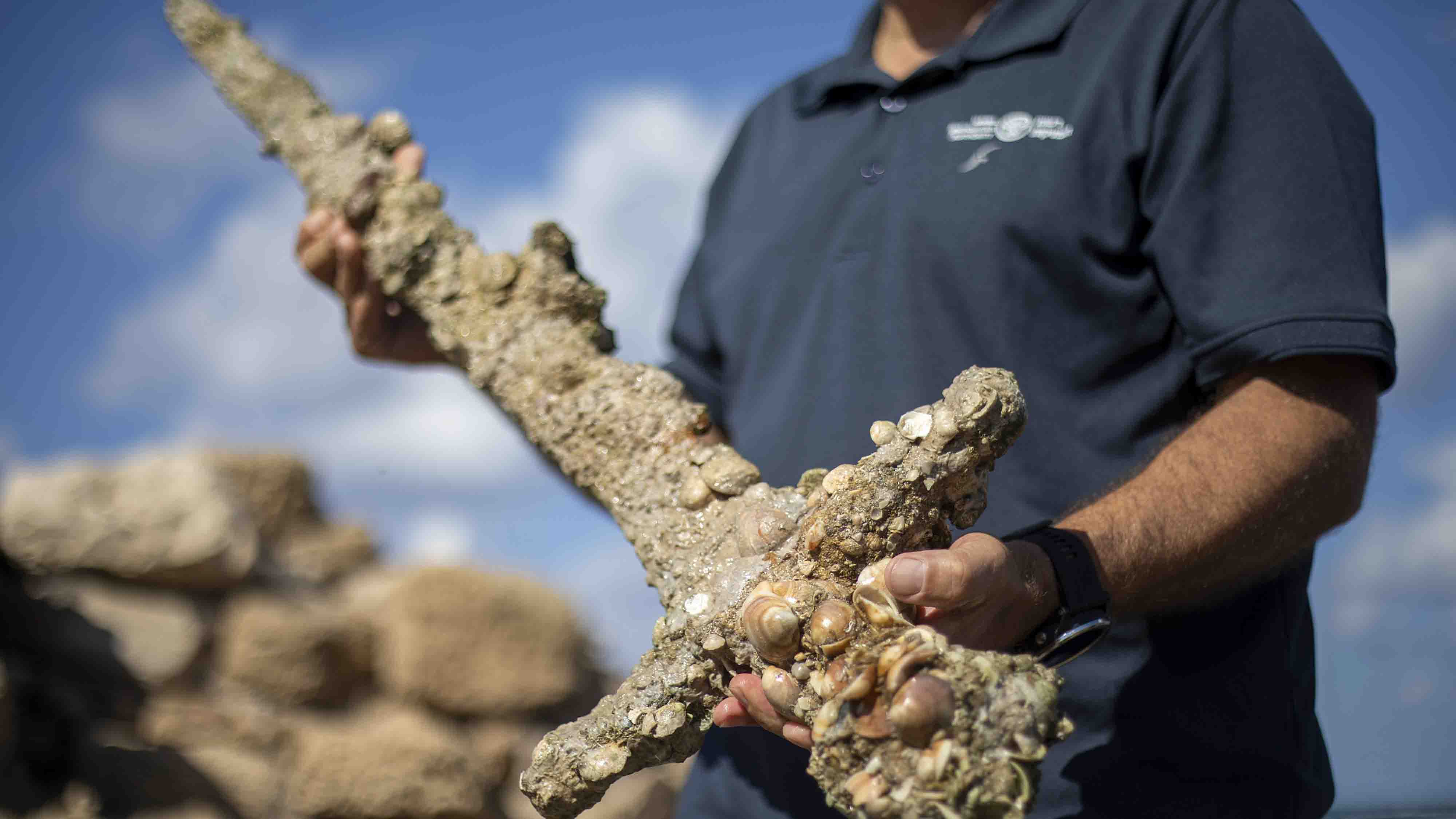 An Israeli scuba diver discovered an ancient sword on his weekend dive off Israel's Mediterranean coast. Experts say the sword dates back to the Crusades, about 900 years ago and is well preserved. The man also spotted other artifacts such as anchors and pottery. The area in northern Israel used to provide shelter for ancient ships and is home for many archeological treasures.