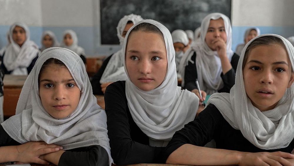 Afghan girls attend a class at a school in Kandahar, Afghanistan, September 26, 2021. /CFP