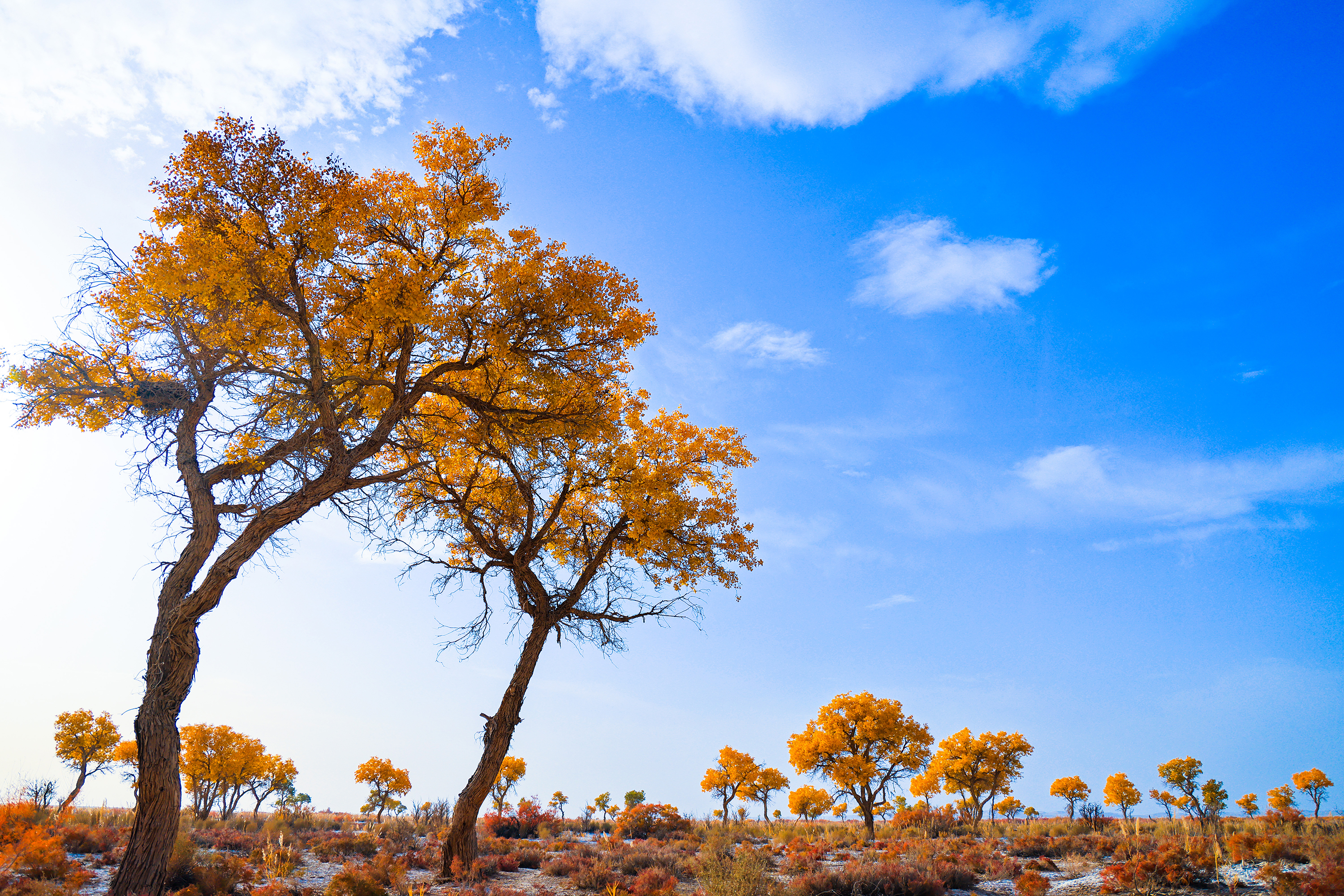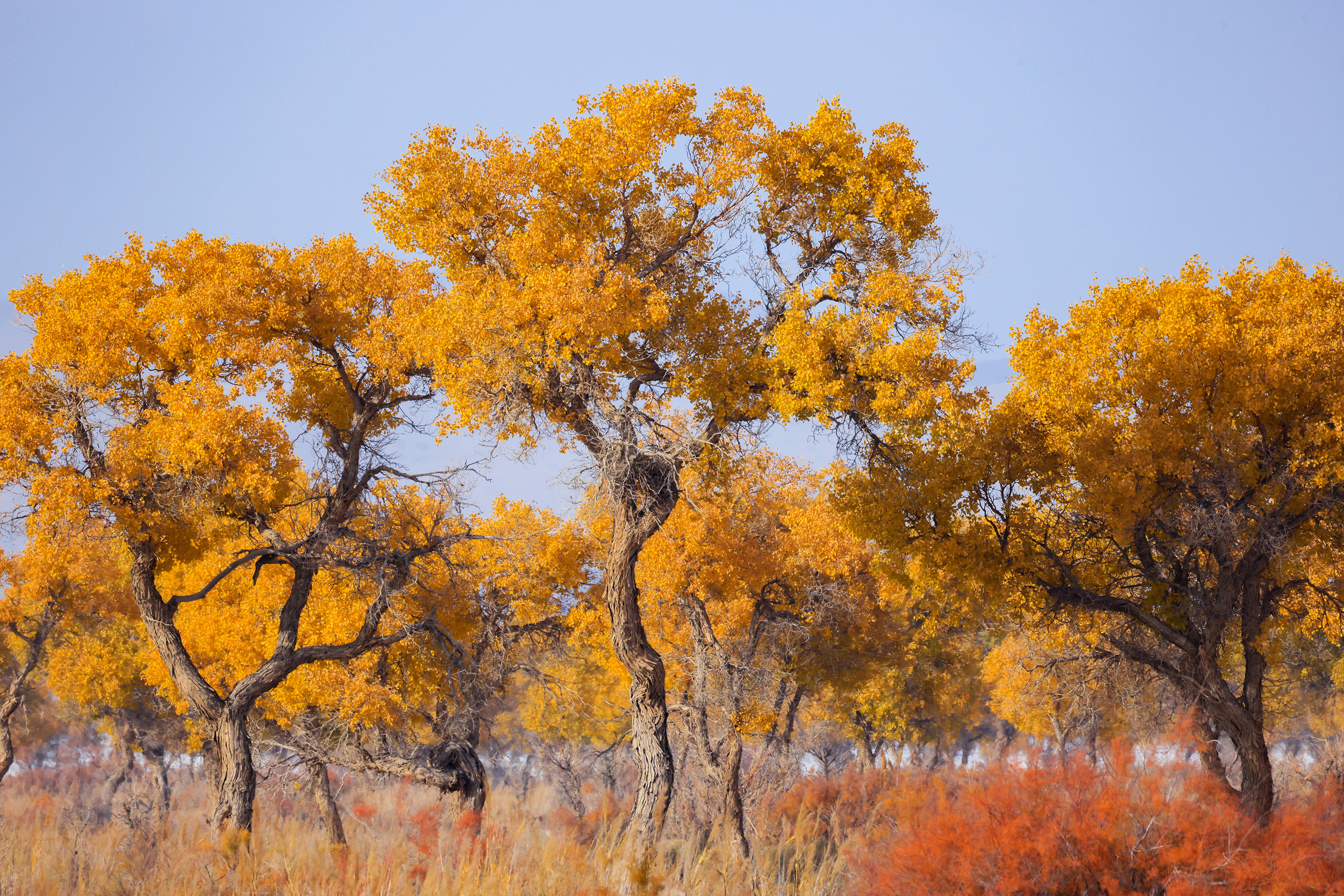 Photos taken on Wednesday show desert poplars which have turned autumn gold in Bohu County, northwest China's Xinjiang Uygur Autonomous Region.
