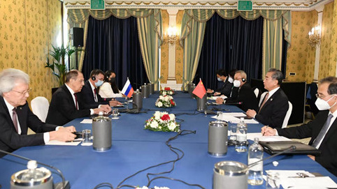 China will continue working with Russia to promote multilateralism, Chinese State Councilor and Foreign Minister Wang Yi said Saturday while meeting with Russian Foreign Minister Sergei Lavrov.
