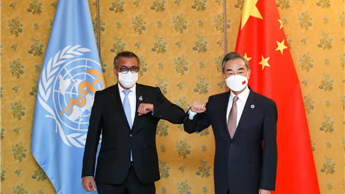 Chinese State Councilor and Foreign Minister Wang Yi met with World Health Organization (WHO) Director-General Tedros Adhanom Ghebreyesus in Rome on Saturday, saying that solidarity is the most powerful weapon in the fight against the COVID-19 pandemic.