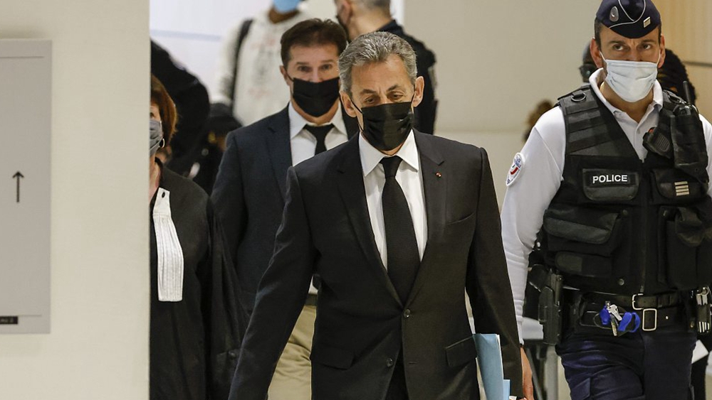 Former French President Nicolas Sarkozy at the court where he was called to testify in a trial in which his former aides are accused of misusing public funds on polling contracts in Paris, France, November 2, 2021. /CFP
