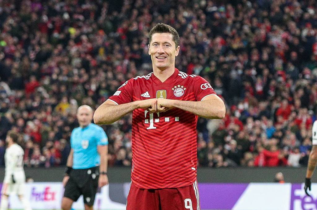 Robert Lewandowski of Bayern Munich broke more records during their Champions League clash with Benfica at the Allianz Arena in Munich, Germany, November 2, 2021. /CFP