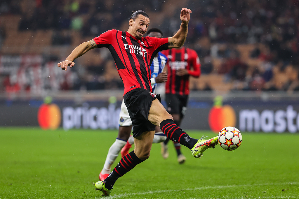 Zlatan Ibrahimovic of AC Milan in action during their Champions League clash with Porto at Giuseppe Meazza Stadium, Milan, Italy, November 3, 2021. /CFP
