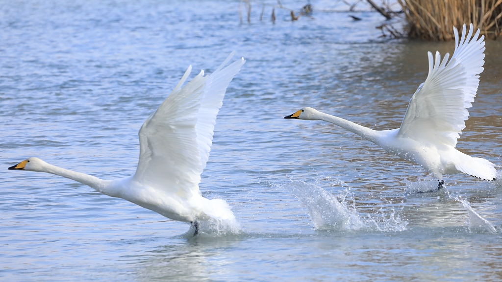The swans, mainly whooper and mute swans, will continue to fly southward after the lake is completely frozen.