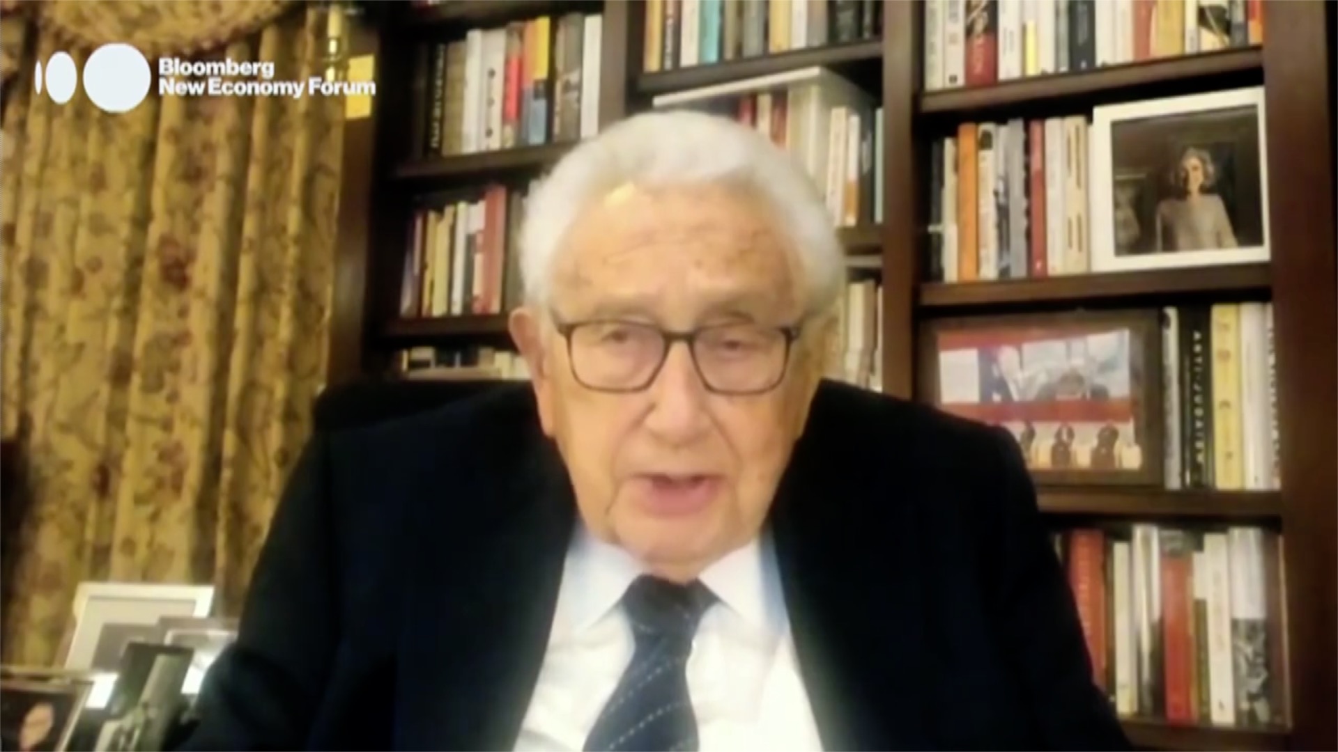 Former U.S. Secretary of State Henry Kissinger said that the recent virtual meeting between Chinese President Xi Jinping and U.S. President Joe Biden was a good beginning for the world's biggest economies to head off a clash. He made the remarks at the Bloomberg New Economy Forum in Singapore on Wednesday.