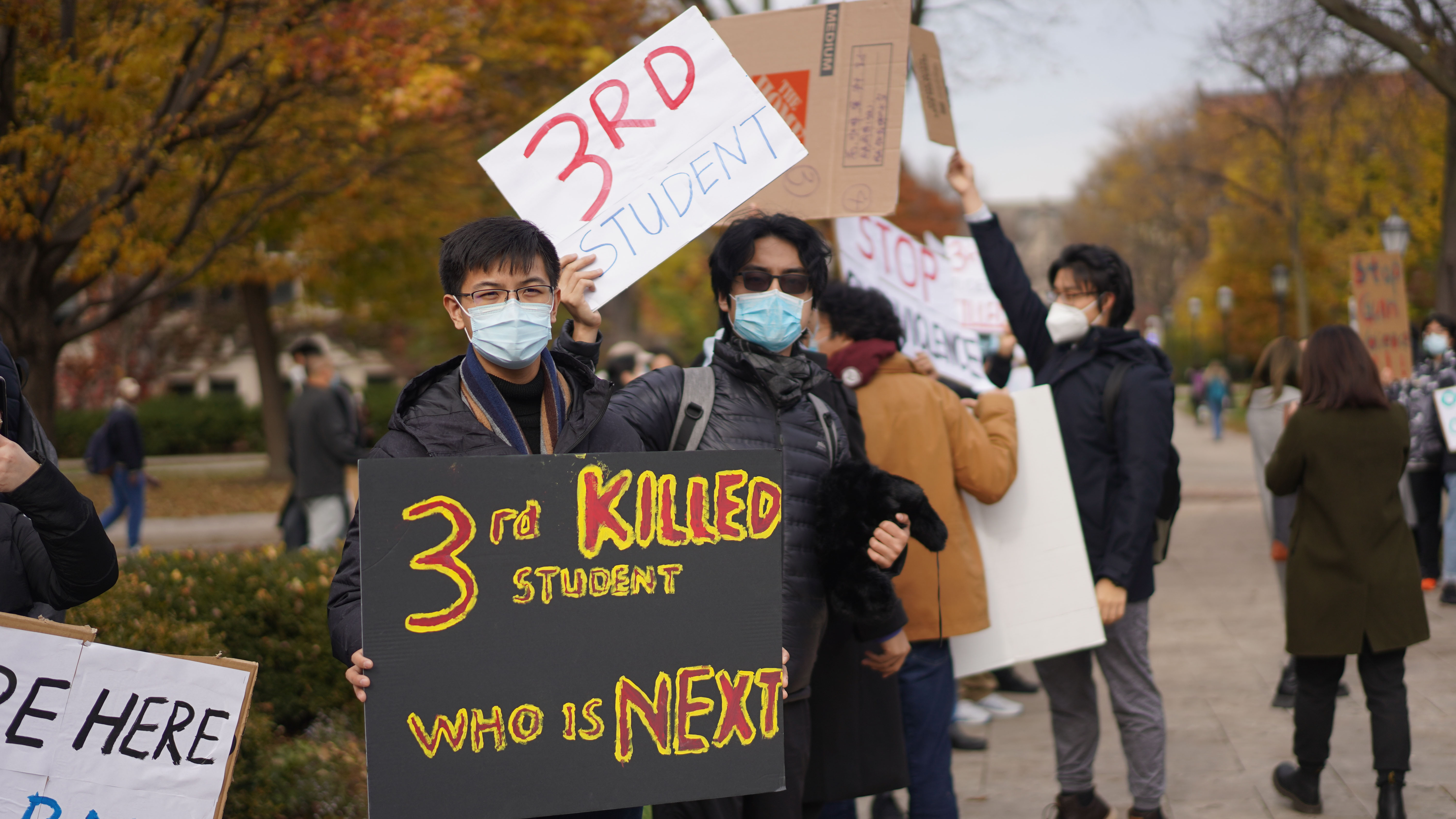Loved ones and classmates from the University of Chicago held a memorial for Zheng Shaoxiong, who was shot dead last week.