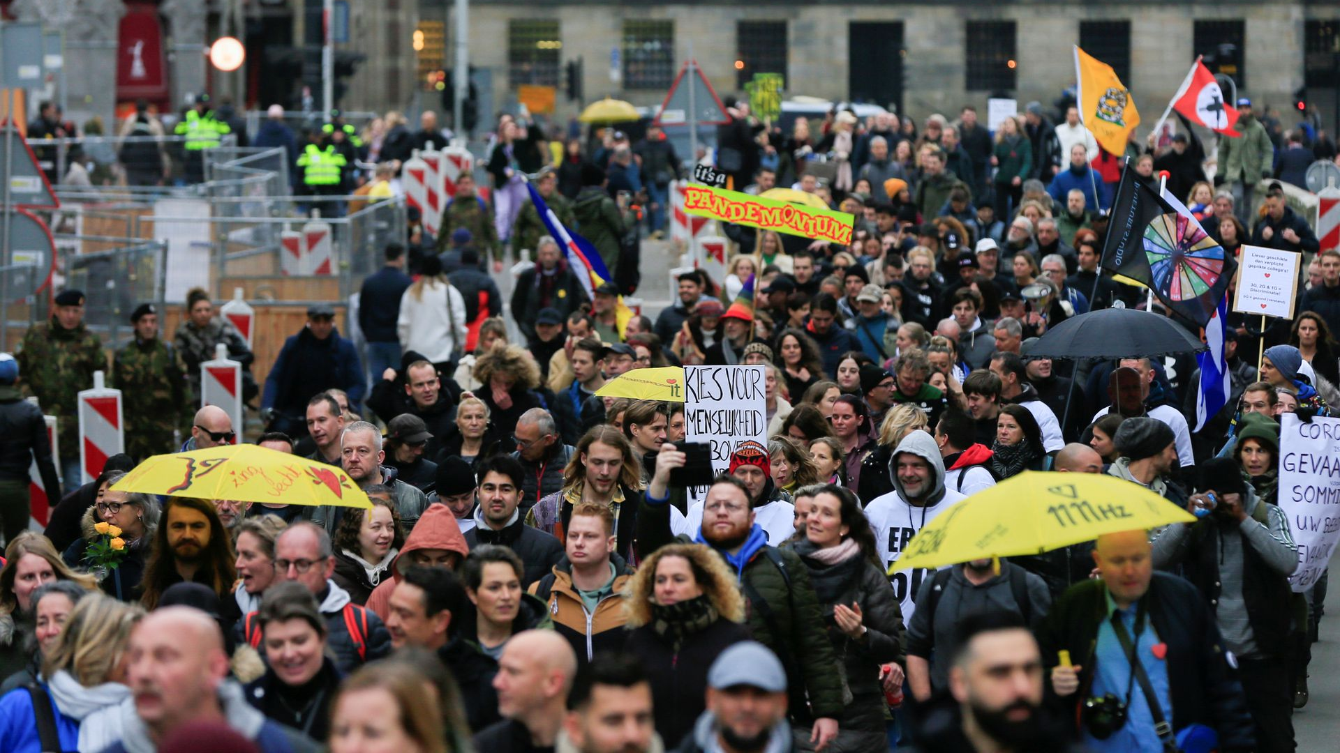Even so, several thousand protesters showed up for a march around the city's central Dam square. The march remained peaceful, monitored by a heavy police presence.