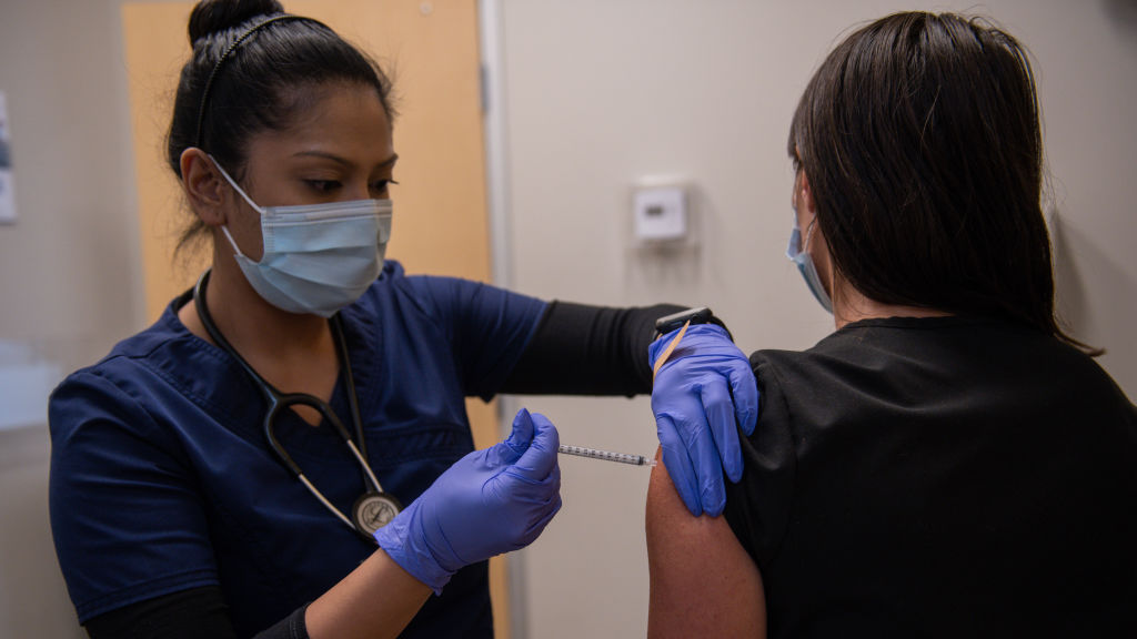 A healthcare worker administers a third dose of the Moderna COVID-19 vaccine at the CareNow Denver University urgent care center in Denver, Colorado, U.S., November 16, 2021. /Getty
