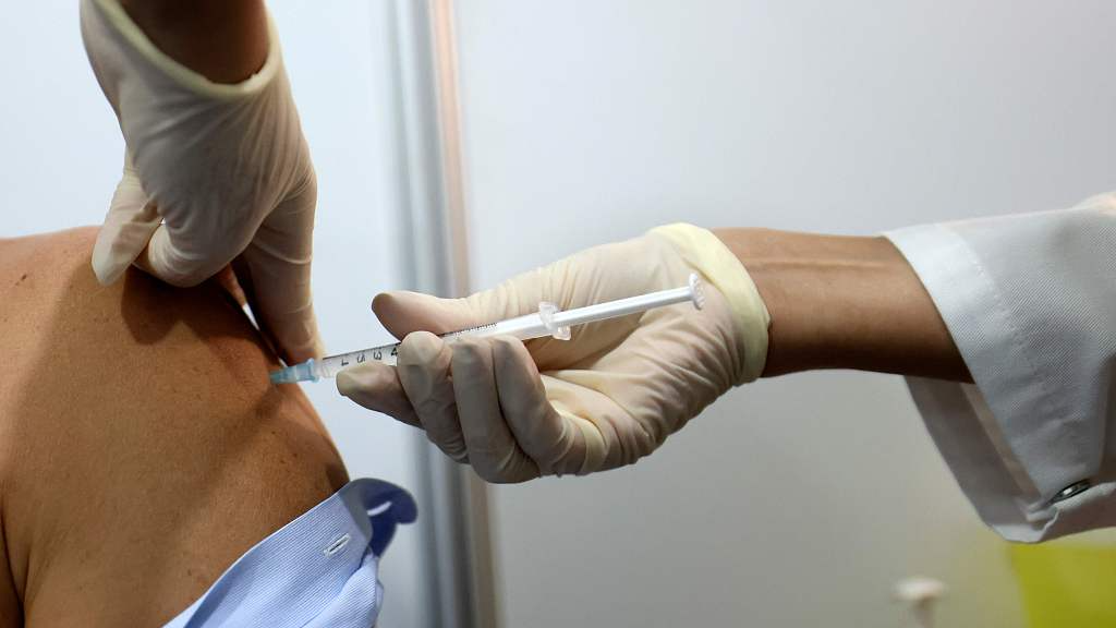 A health worker injects a man with a dose of vaccine against the coronavirus, at a vaccination centre set up at the Dubai International Financial Center in the Gulf emirate of Dubai, February 3, 2021. /CFP