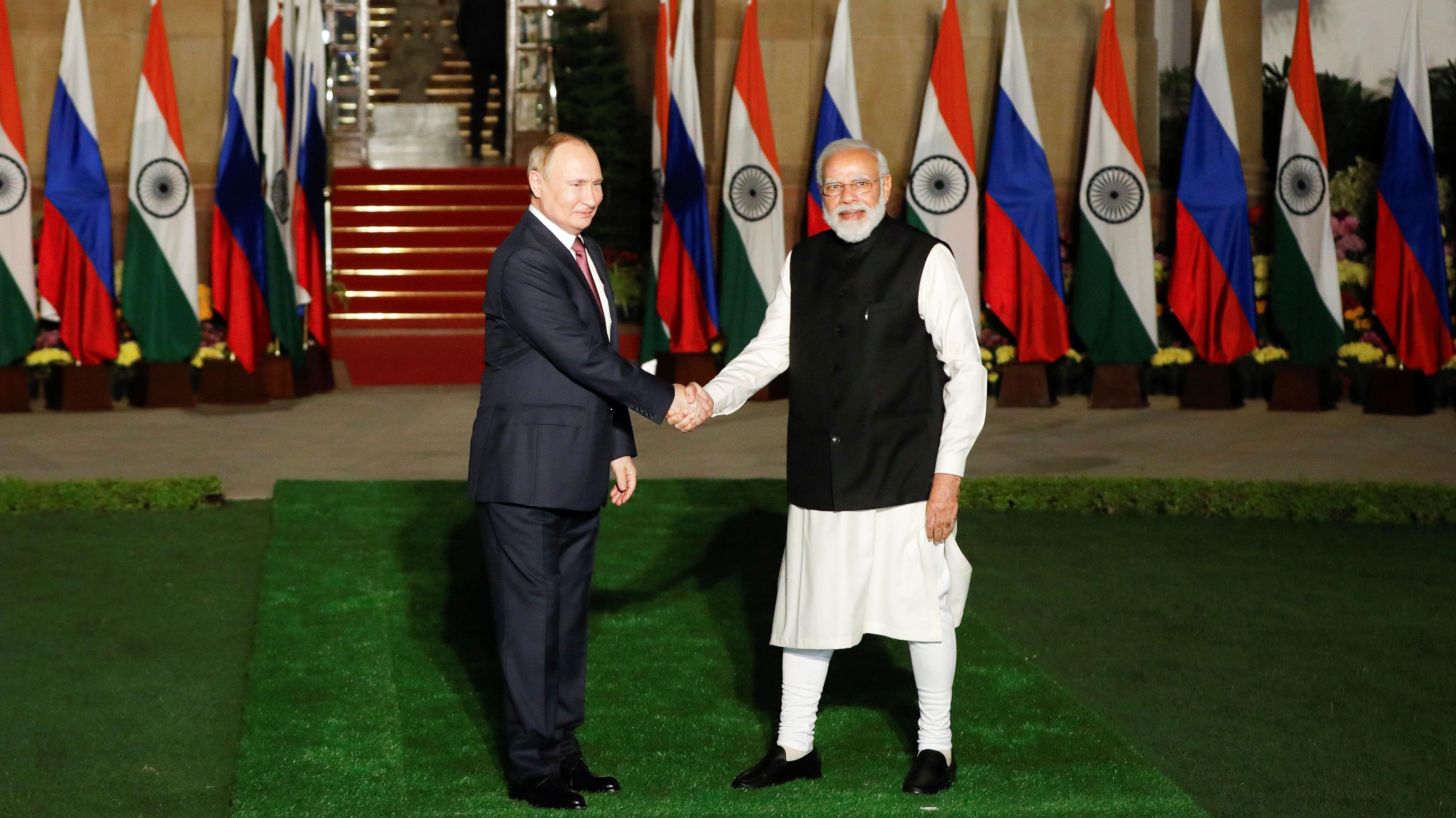 (Cover: Russian President Vladimir Putin (L) shakes hands with Indian Prime Minister Narendra Modi ahead of their meeting at Hyderabad House in New Delhi, India, December 6, 2021. /Reuters)