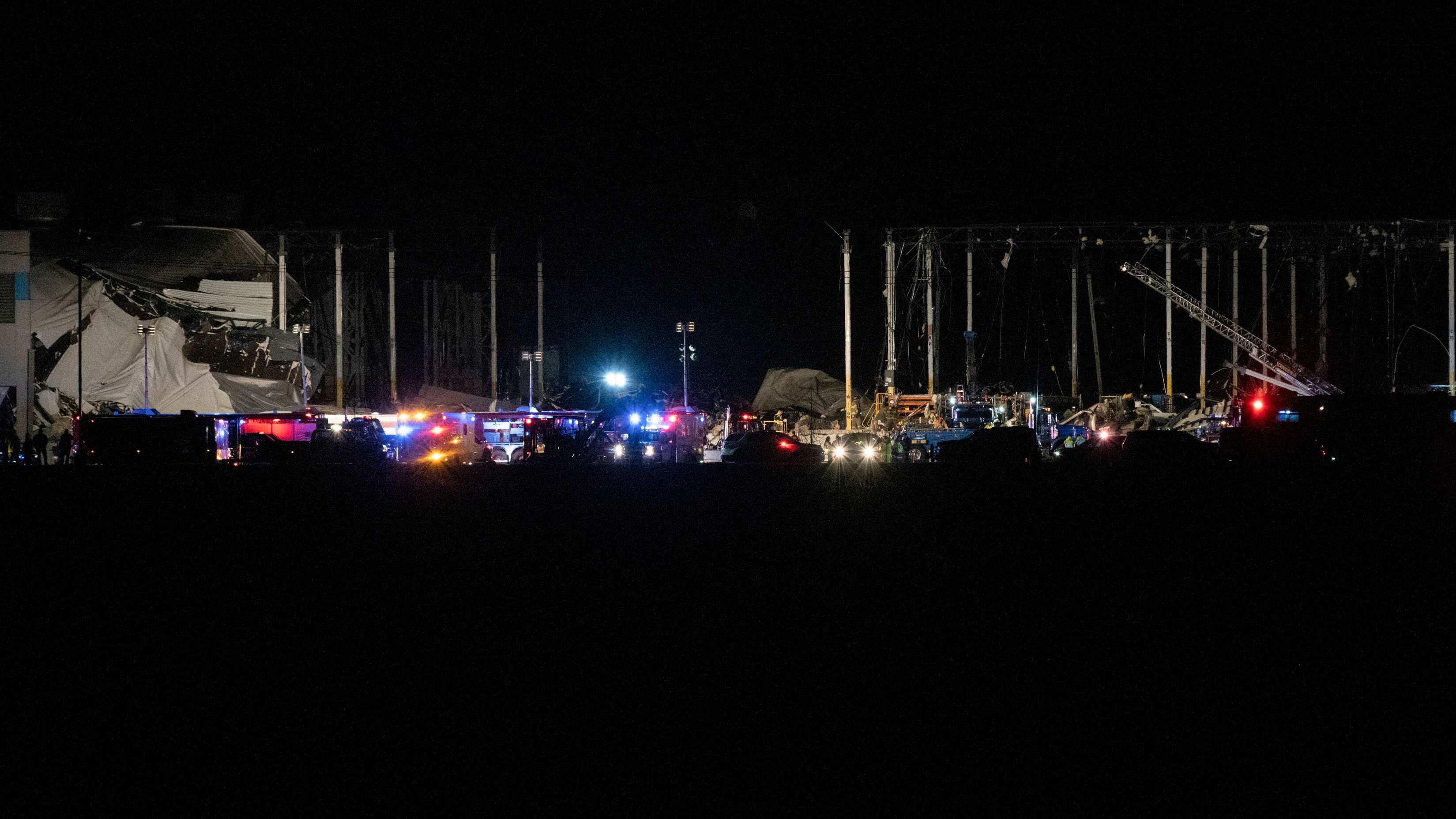 Emergency vehicles surround the site of a roof collapse at an Amazon distribution center in Edwardsville, Illinois, U.S., December 10, 2021. /Reuters