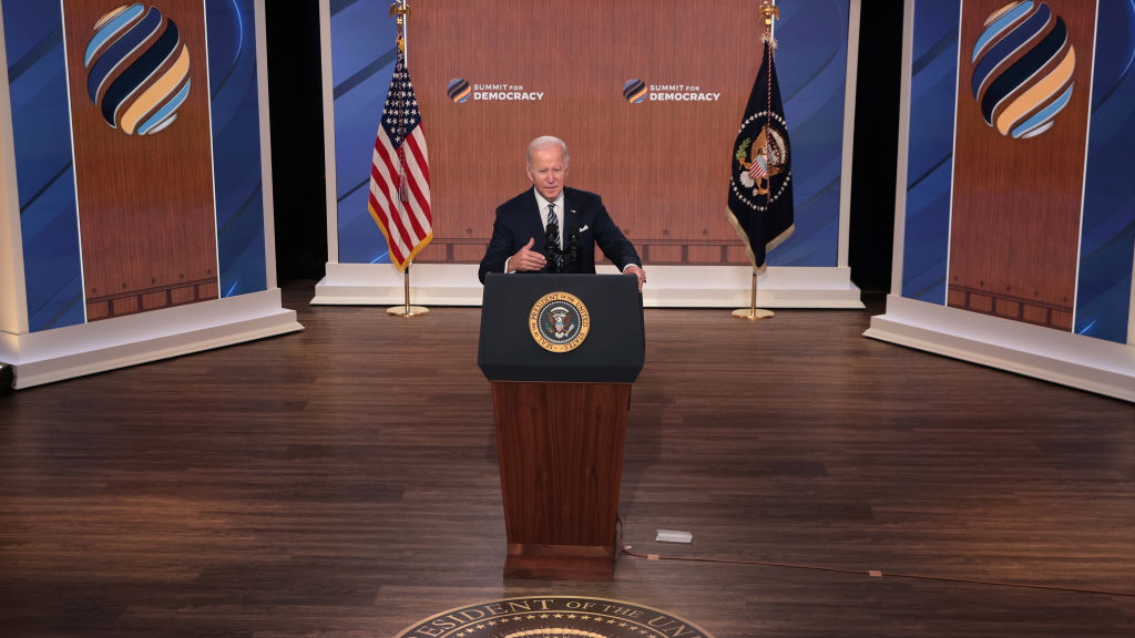 U.S. President Joe Biden delivers closing remarks for the White House's virtual Summit For Democracy in the Eisenhower Executive Office Building in Washington, D.C., December 10, 2021. /Getty