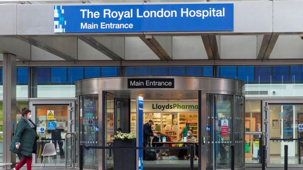 People wearing face masks, amid the spread of COVID-19, at the main entrance of the Royal London Hospital, in London, December 31, 2021. /Reuters