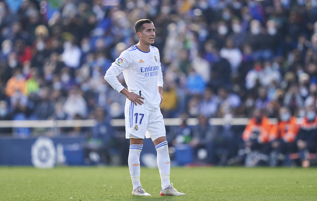 Lucas Vazquez of Real Madrid CF looks dejected during their La Liga clash with Getafe at Coliseum Alfonso Perez in Getafe, Spain, January 2, 2022. /CFP