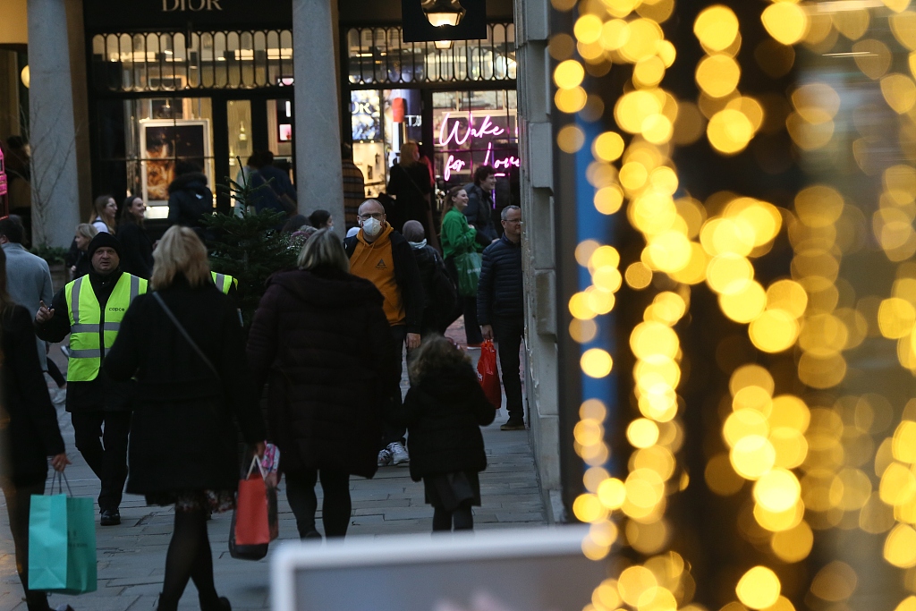 People continue to wear masks on street in London, UK, December 15, 2021. /CFP