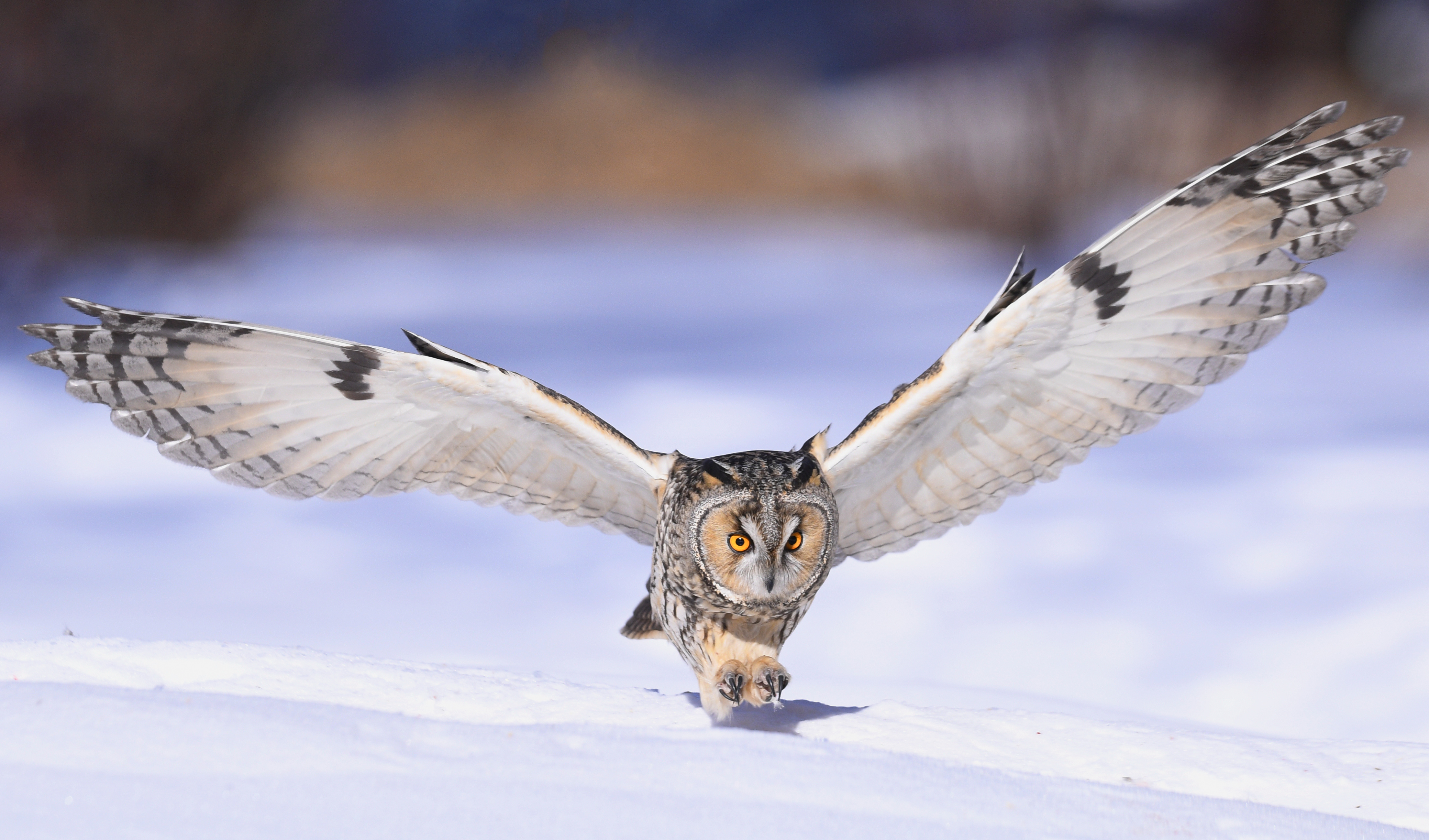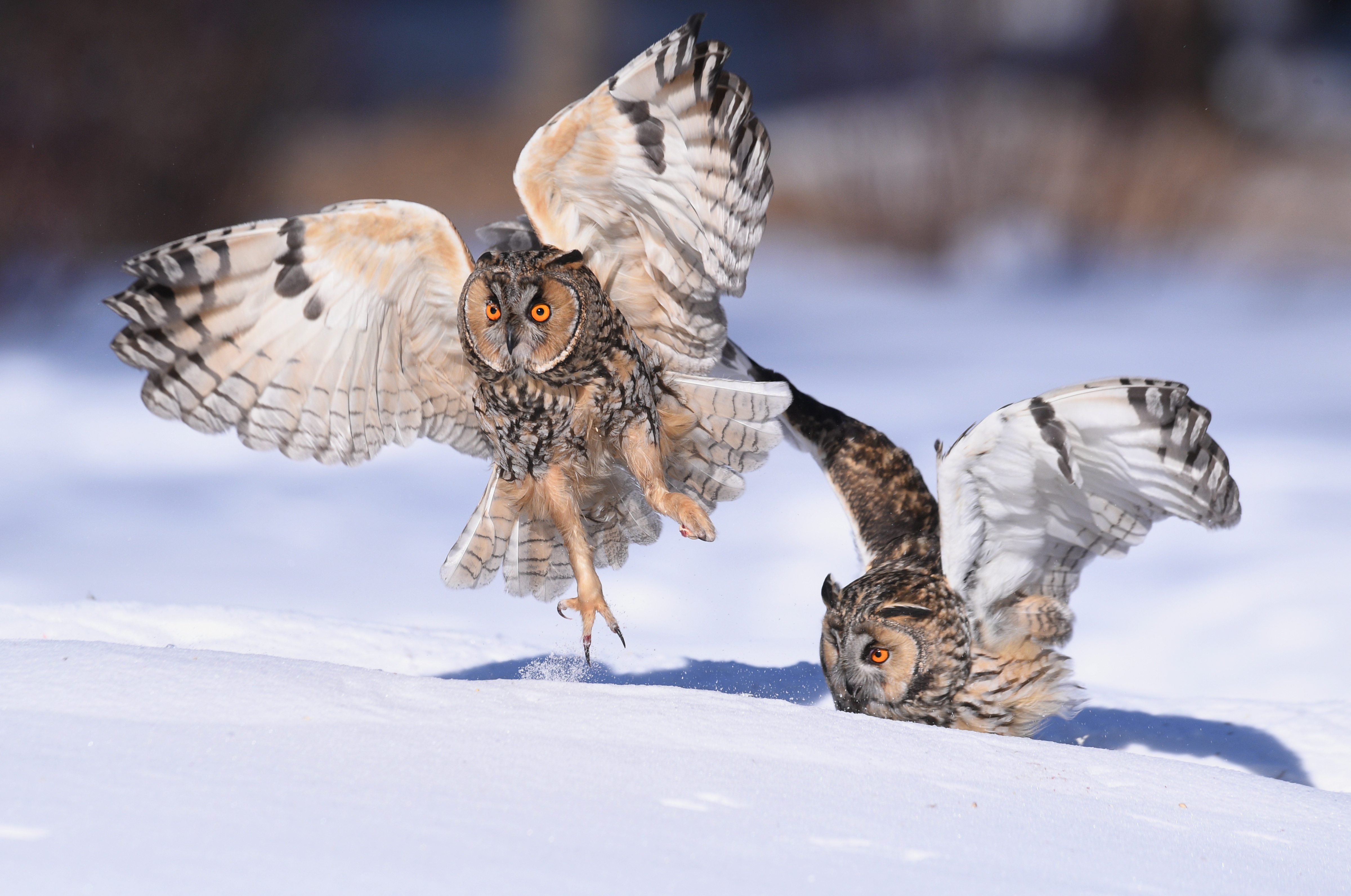 Do you like owls? If you do, then you must be familiar with the long-eared owl also known as the cat owl. The animal is known for its long ear tufts. The feathers on their head are display feathers. Their ears are actually hidden beneath the feathers behind their eyes. The long-eared owl eats small mammals, including mice and voles. Here are some photos of long-eared owls taken by Lin Ge in Daqing City, northeast China's Heilongjiang Province.