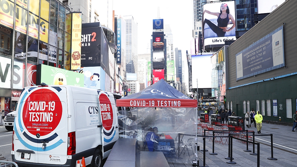 A mobile COVID-19 testing site in Times Square, New York City, U.S., February 8, 2022. /CFP