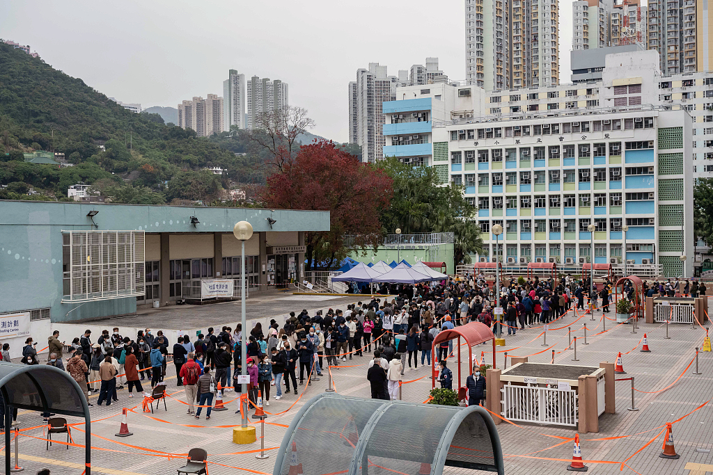 Residents queue at a COVID-19 testing facility in the Shatin area of Hong Kong, China, February 10, 2022. /CFP