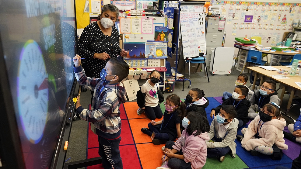 Students are seen wearing masks at Washington Elementary School in Lynwood, California, U.S., January 12, 2022. /CFP