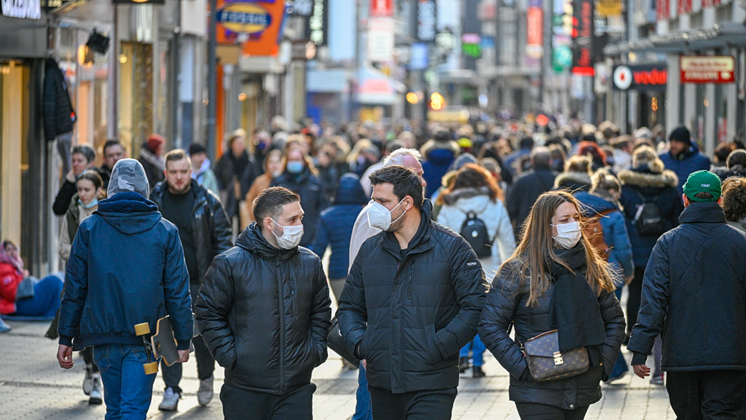 People walk on a pedestrian shopping street in Cologne, Germany, February 19, 2022. /CFP