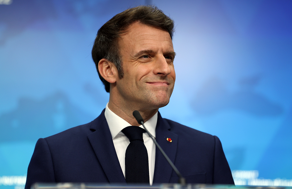 French President Emmanuel Macron gives a statement on the coronavirus vaccination at The European Council Building in Brussels, Belgium on February 18, 2022. /CFP