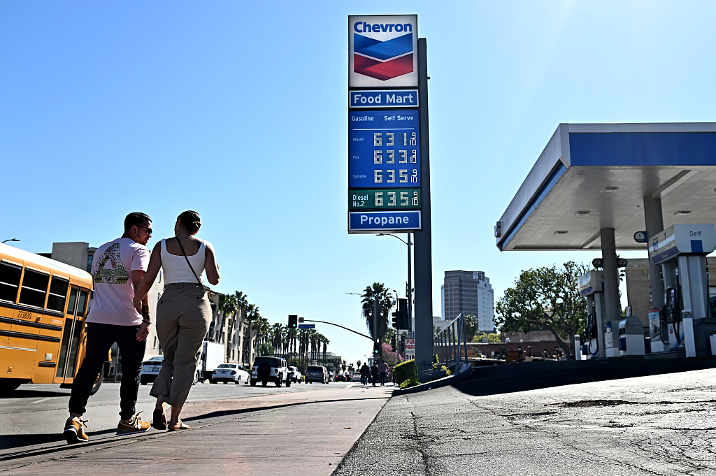 Gas prices reach over $6 a gallon at a gas station in Los Angeles, California, U.S., February 28, 2022. /CFP