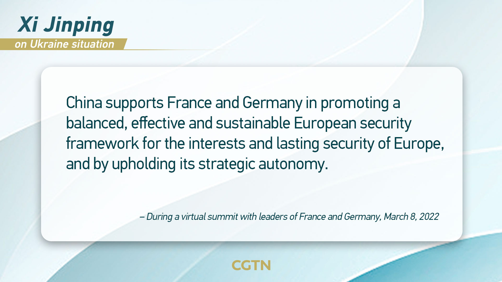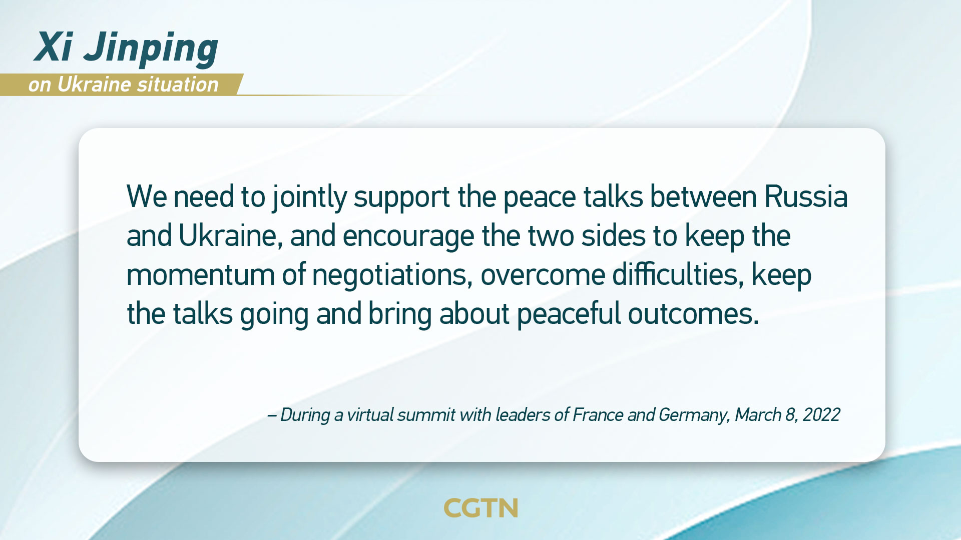 When exchanging views on Ukraine with the other two leaders, Xi stressed that the current situation in Ukraine is worrisome, and the Chinese side is deeply grieved by the outbreak of war again on the European continent.