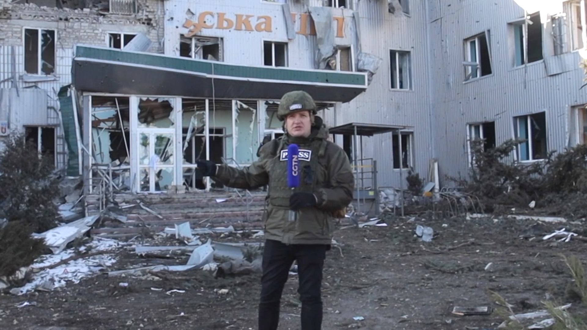 After days of intense gun battles, the small Ukrainian city of Volnovakha has been destroyed from the suburbs to downtown, the central hospital has been wrecked, the remaining residential buildings have no water, electricity or gas, and the bodies of civilians lie on the streets. CGTN correspondent Dmitriy Maslak reported from the scene.