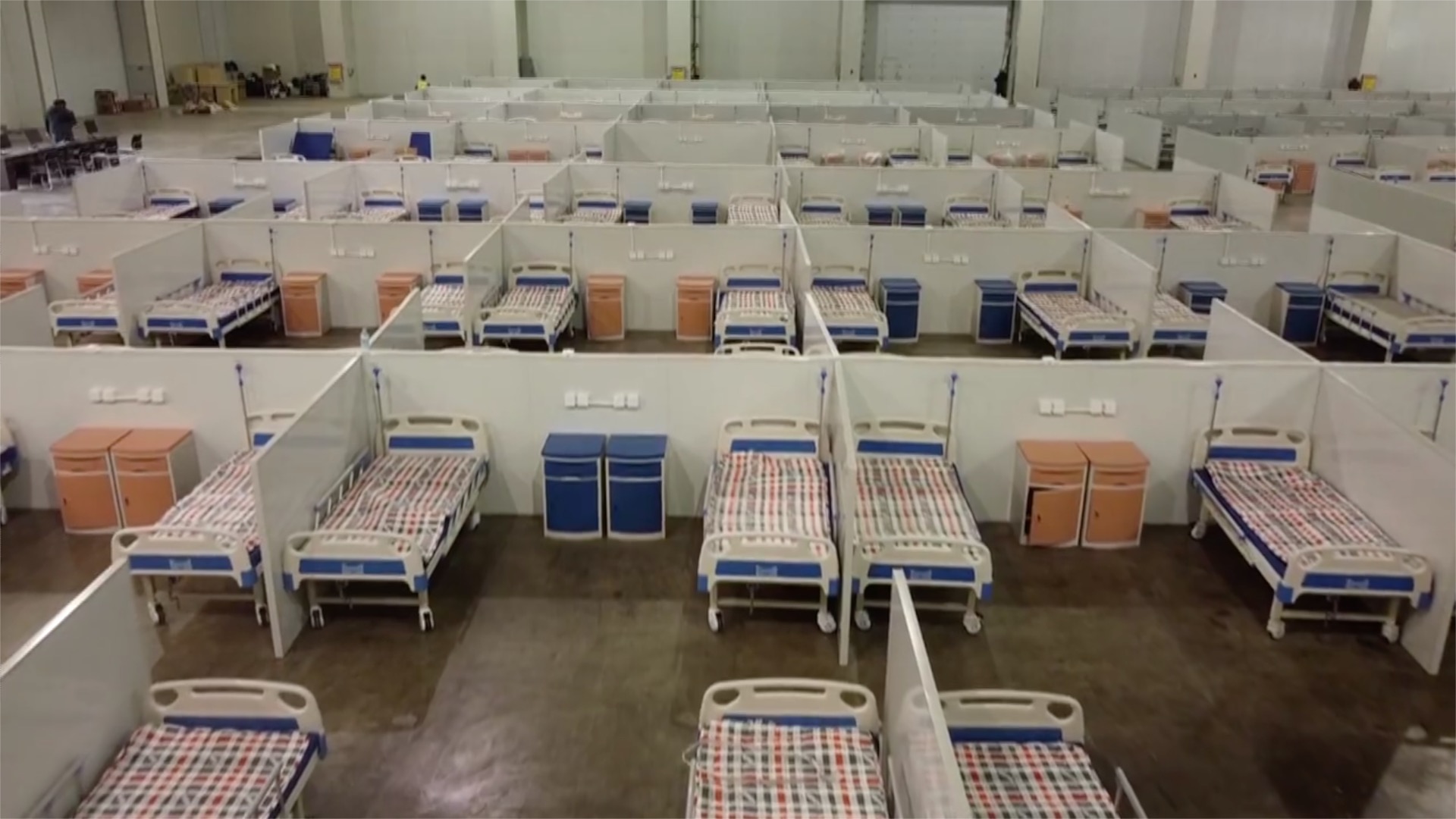 A part of Langfang International Convention and Exhibition Center in Hebei Province, around 50 kilometers from Beijing, has been converted into a 1,100-bed makeshift hospital, the first of its kind in the city. Medical personnel from Langfang People's Hospital have arrived and are ready to assume their duties.