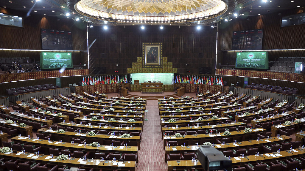 The lower house of Pakistan's parliament before the 17th extraordinary session of the Organisation of Islamic Cooperation's Council of Foreign Ministers in Islamabad, Pakistan, December 19, 2021. /VCG
