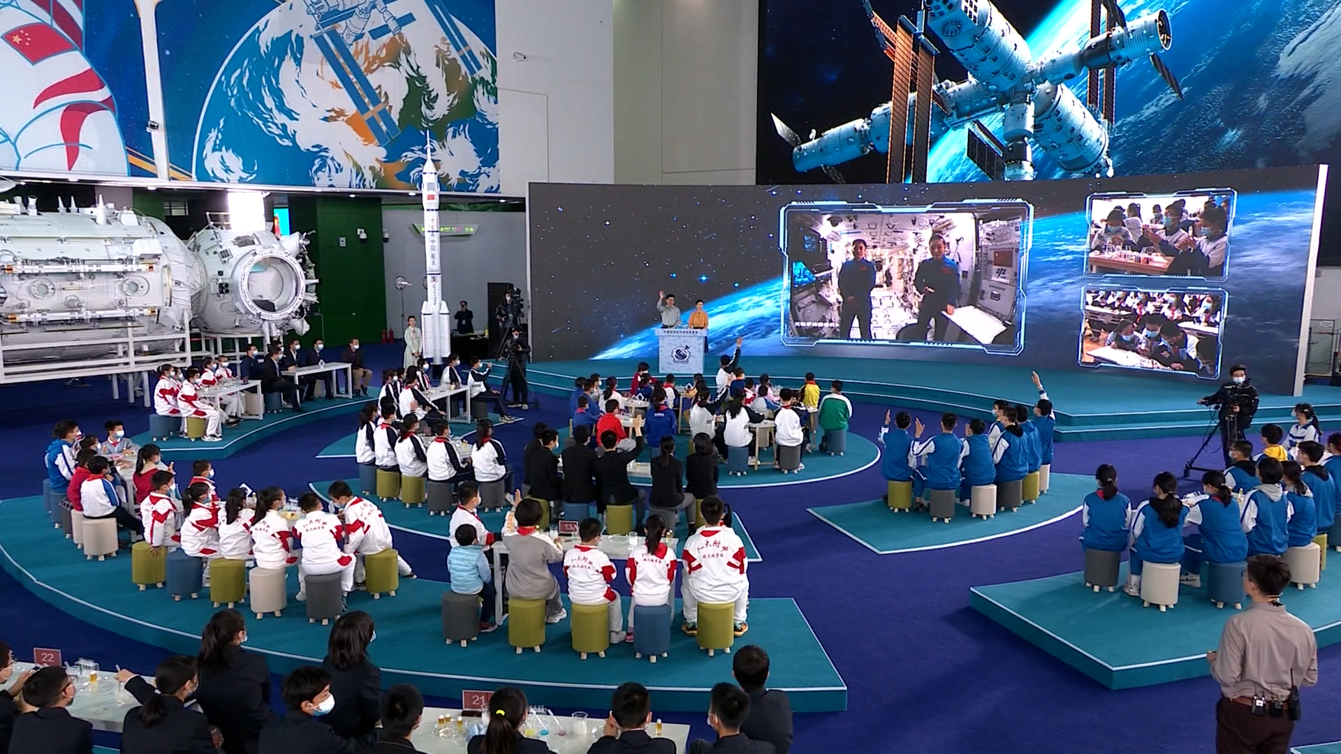 Three Chinese astronauts aboard the space station talked with Chinese schoolchildren, aiming to inspire their interest in science and space.