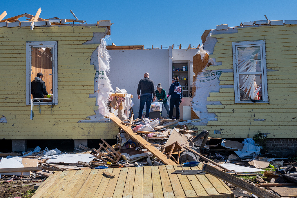 Volunteers help clear out belongings from a tornado-damaged home in the Arabi neighborhood on March 23, 2022 in New Orleans, Louisiana. /CFP