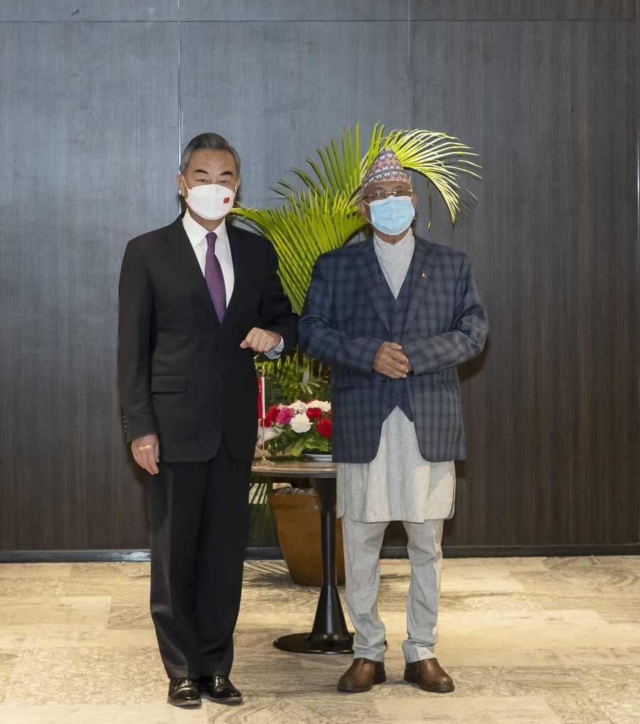 During his meeting with KP Sharma Oli, chairman of the Communist Party of Nepal (Unified Marxist Leninist), Wang said both countries have been pushing forward cooperation steadily, joining hands to fight the COVID-19 pandemic and help Nepal's recovery and development, and bringing tangible benefits to the Nepali people.