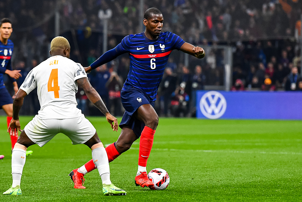 Paul Pogba (#6) of France penetrates in the game against Cote d'Ivoire in Marseille, France, March 25, 2022 . /CFP