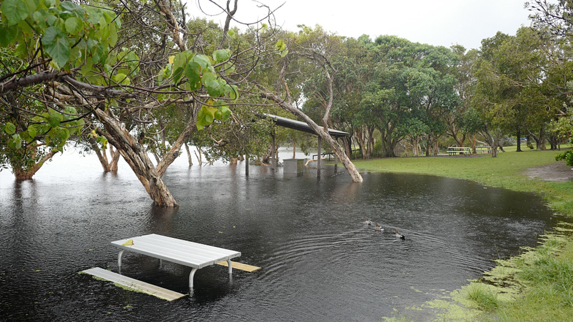 The Australian coastal enclave of Byron Bay was inundated by flood waters as severe storms battered stretches of the country's east. Torrential rain began on Monday, with more than 250 millimeters (9.8 inches) falling in the area in 24 hours, forcing many shops in the Byron Bay town centers to close as roads were cut off by rising water levels. By Wednesday morning, there were 10 evacuation orders in place across the affected region, urging thousands of people to leave their homes for higher ground. For weeks, Australia's east has been smashed by extreme weather, fueled by La Nina weather patterns and climate change. Record rainfalls and deadly flooding have killed at least 22 people since early February.