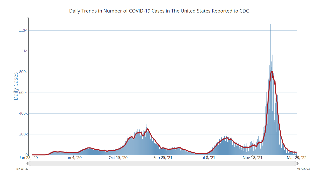 Daily trends in number of COVID-19 cases in the U.S. /CDC