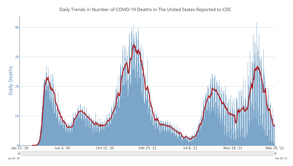 Daily trends in number of COVID-19 deaths in the U.S. /CDC