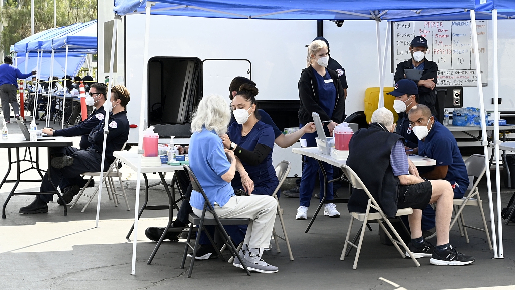 The flow of people waiting for their second booster shot against COVID-19 at Long Beach City College in Long Beach, March 30, 2022. /CFP